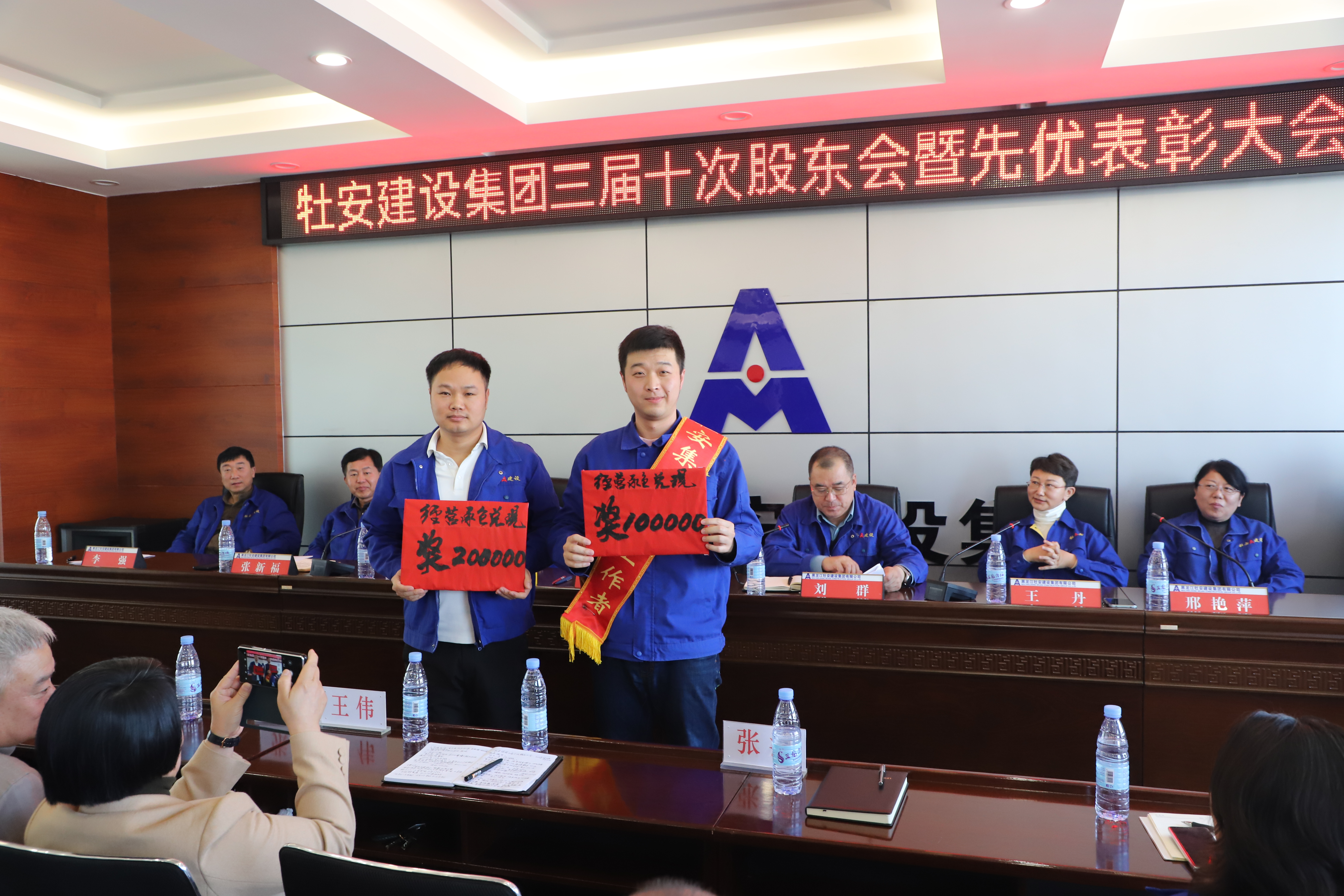 項(xiàng)目經(jīng)理承包兌現(xiàn)獎,左起:何大偉、曹福昌(孫磊代領(lǐng))